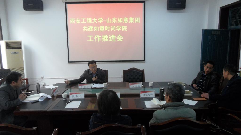 黄新波首先向与会人员介绍了我校和山东如意集团共建如意时尚学院的背景、目前学院办学基本定位和学院中长期发展规划等。他希望学校相关部门要以此次共建如意时尚学院为契机,在成人学历教育和非学历教育、研究生教育以及高层次人才联合引进等方面积极同山东如意集团进行对接,积极参与到如意时尚学院的共建工作中。
