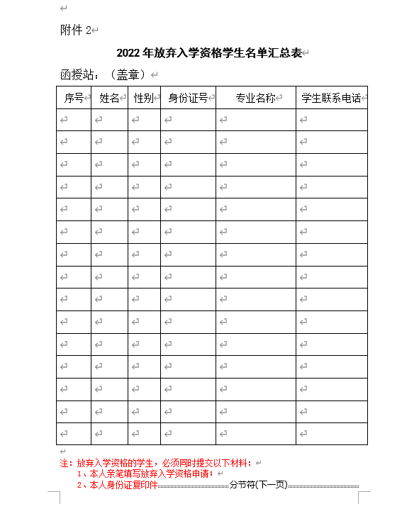 1.登记。各函授站组织人员,在新生入学阶段做好登记、自查工作。新生报到时,必须由本人亲笔填写《2022年陕西省成人高校新生登记表》(见附件1),并在该表对应位置分别粘贴录取照片及近期免冠正面半身一寸照片一张。函授站负责人签字盖章确认。